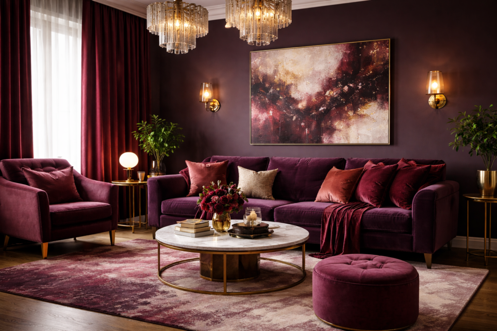 Aubergine bordeaux rood combineren interieur voor een diepe en stijlvolle sfeer